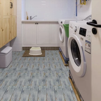 Meiban Vinyl Flooring 6-in x 35-in x 1.0mm Peel and Stick Floor Tile Blue Self-Adhesive DIY Flooring Tiles Grain Feel for Kitchen Dinning Room Bedroom Home Decoration (Cover 11.7 Sq. ft, 8-pcs/pack)
